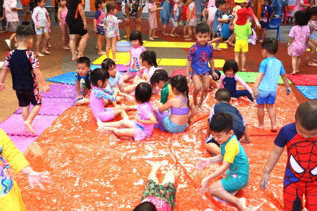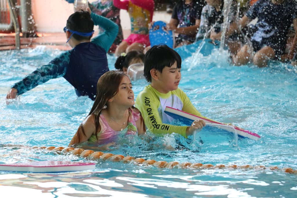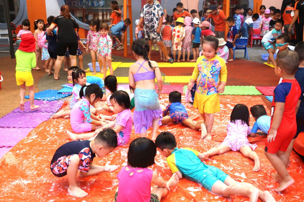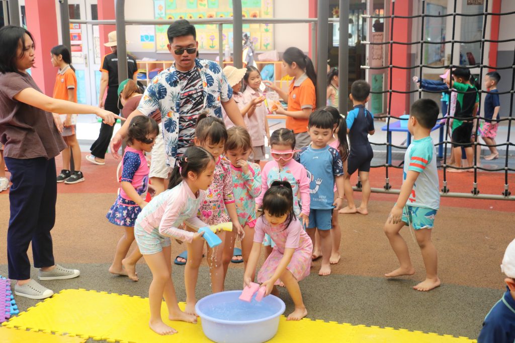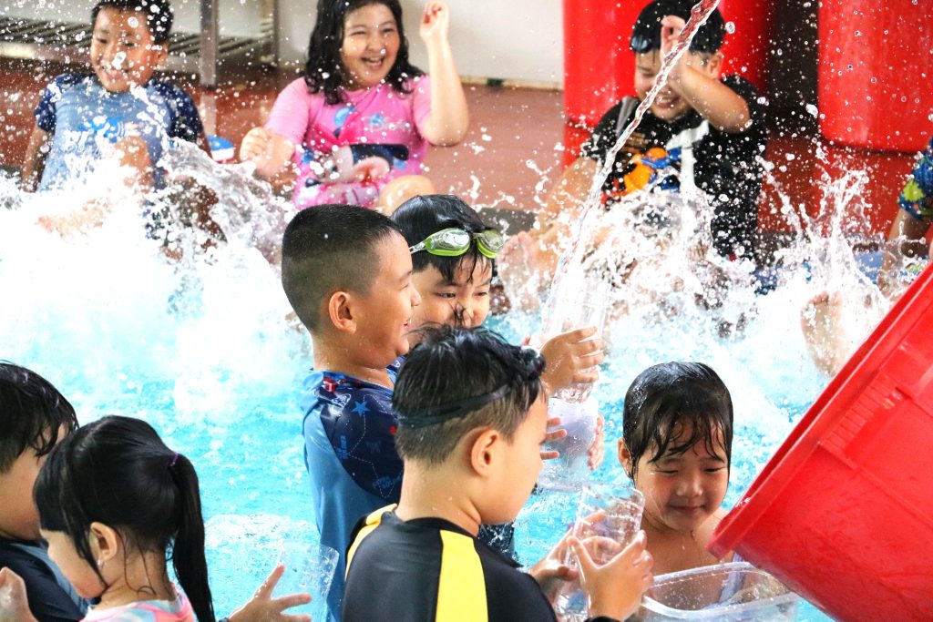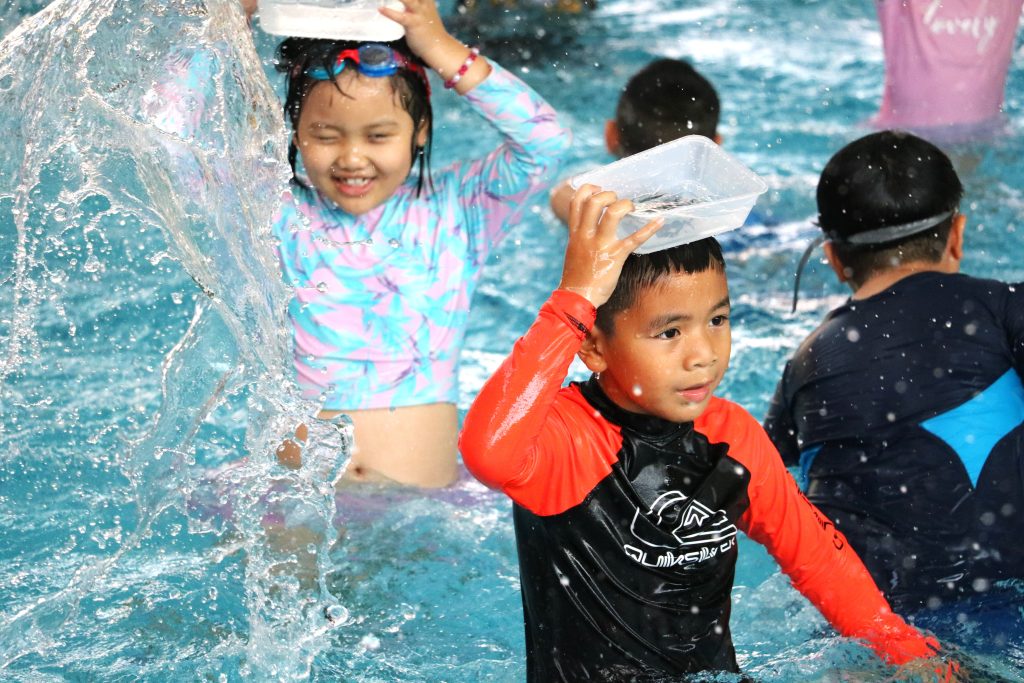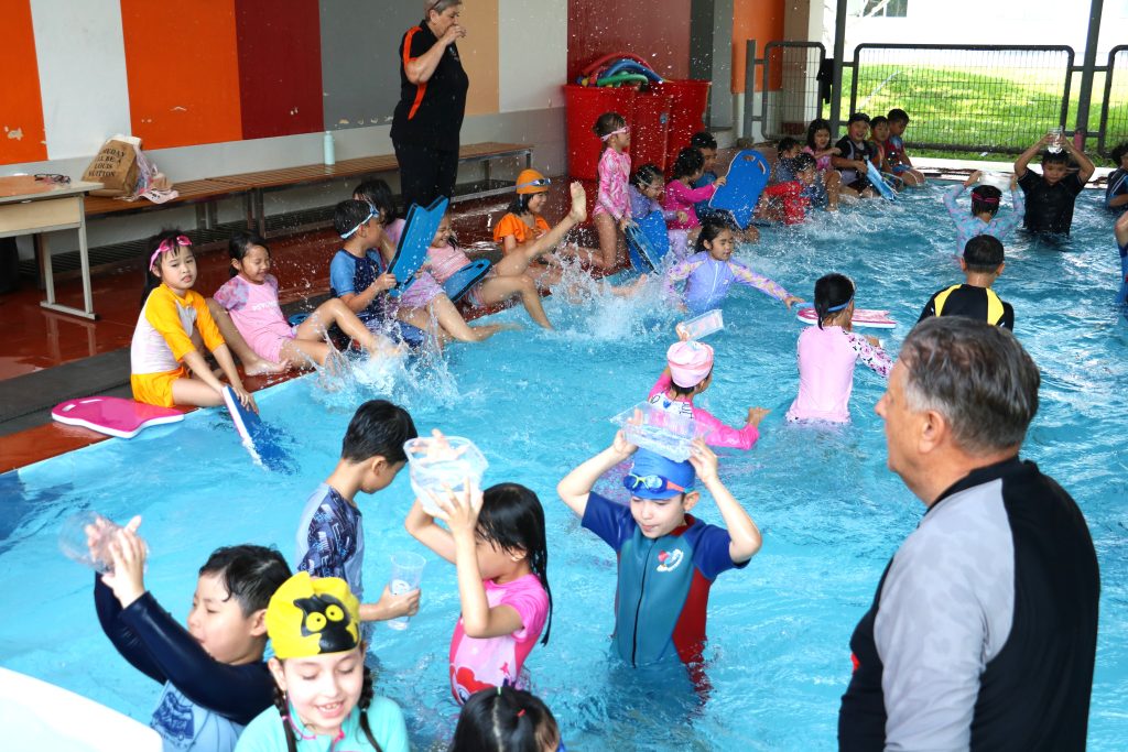 🏊🏊On World Water Day at Singapore International School in Binh Duong New City, students joined a special activity where they had to cross the pool holding a container above their heads and transport water from a full bucket of water and pour it into an empty one. There were obstacles such as noodles, gushing hosepipes, and splashing water on the students!!! Should any water be spilled, the students were not allowed to refill the container with the swimming pool water but must go back and fill up the bucket. This was repeated until time was up.